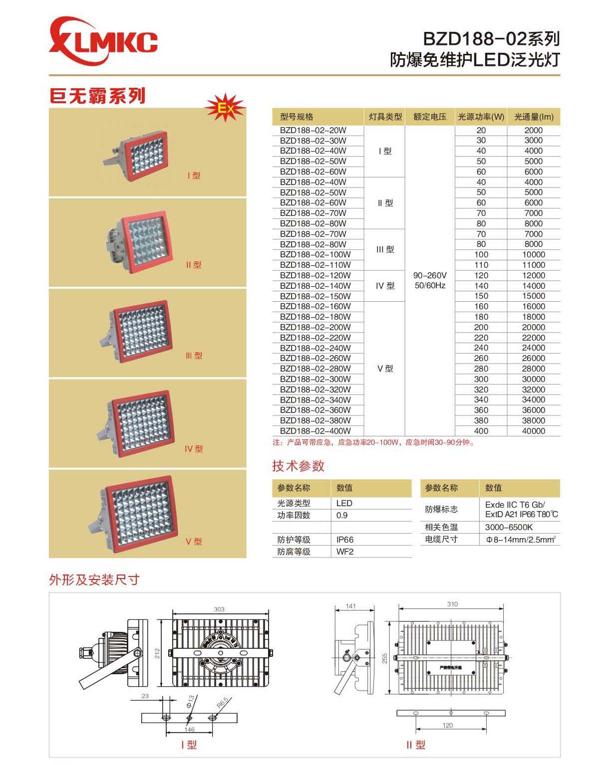 2.鋼化玻璃燈罩,反光罩采用鍍鉻及噴塑工藝。