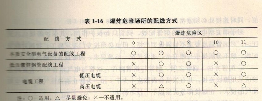 ②爆炸危險場所配線方式應(yīng)符合表1-16的規(guī)定。
